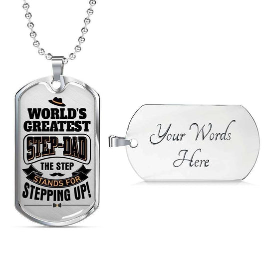 Dad Dog Tag Custom Picture Father’S Day Gift, World’S Greatest Step Dad The Step For Stepping Up Dog Tag Military Chain Necklace For Step Dad