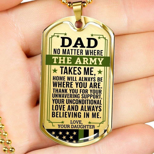 Dad Dog Tag Custom Picture Father’S Day, Army Daughter Gift For Dad Necklace Home Is Where You Are