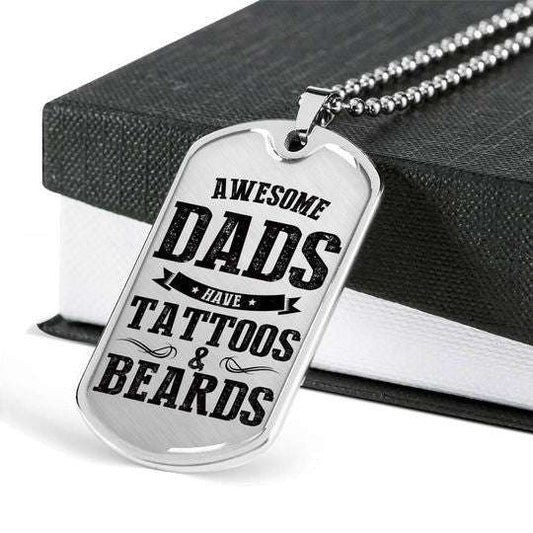 Dad Dog Tag Custom Picture Father’S Day, Awesome Dads Have Tattoos And Beards Dog Tag Necklace Gift For Dad