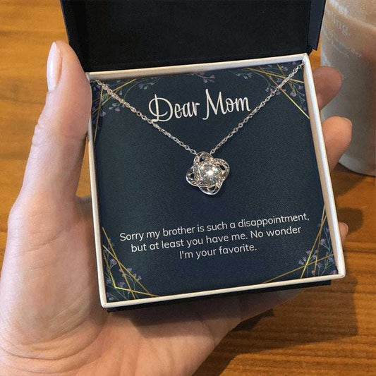 Mom Necklace, Mom Mother’S Day Gift Love Knot Necklace Brother Disappointment Message Card