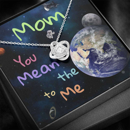 Mom Necklace, Mom You Mean The World To Me “ Galaxy Love Knot Necklace