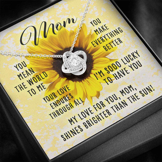 Mom Necklace, Sunflower Love Message For Mom “ Love Knot Necklace