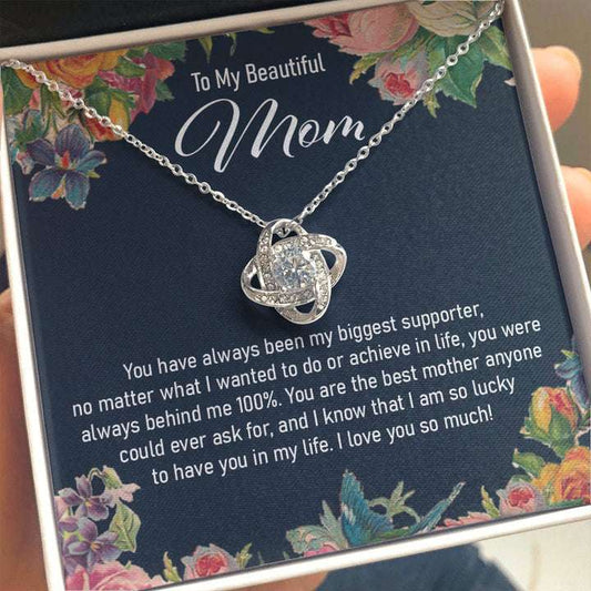 Mom Necklace, To My Beautiful Mom Love Knot Necklace Meaningful Message Card Present For Mother