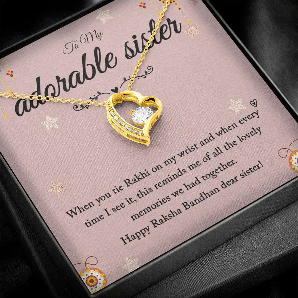 They say there’s no bond like the one between sisters and brother. And honestly, facts! Whether she’s your chosen bestie who just so happens to be related to you, or your polar opposite who gets on your nerves from time to time (but you love her anyway), the relationship you have with your sister may just be the longest one of your life, and that is something to celebrate...with a one-of-a-kind present that shows her how much you care! Especially when it's Raksha Bandhan. Rakva is here to make the festival of the year memorable this year with the thoughtful rakhi gift for sister - the dazzling Forever Love Pendant. This Raksha Bandhan, surprise your sibling with this most unique rakhi gift for sister out there!
