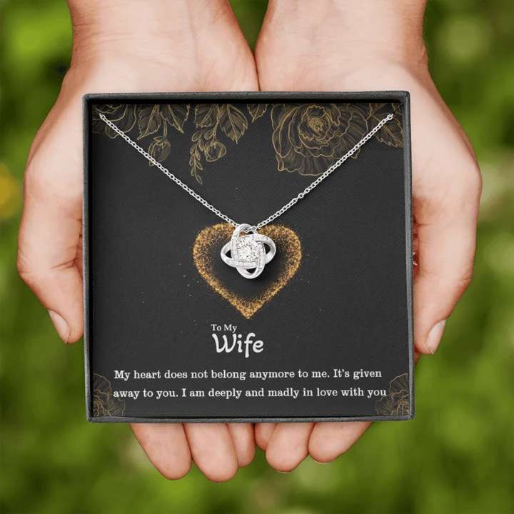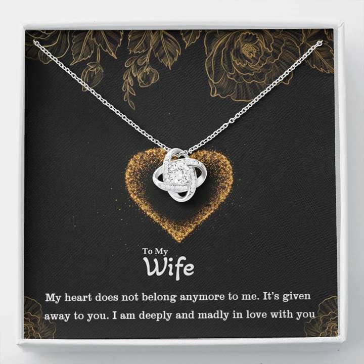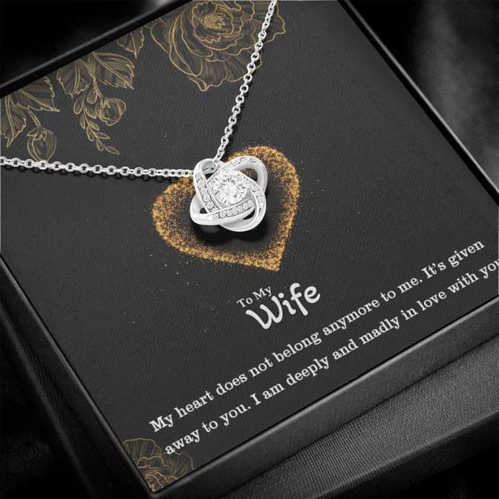 Why is it that the one we know and love the most is often the hardest to shop for? Choosing the perfect surprise gift for wife from husband can be tough—after all, you have to try to show her how much she means to you with just one present. We guarantee you that she will be overwhelmed to receive this pendant from YOU. This symbol is a forever favorite and trending everywhere. The beautiful Love Knot is crafted with a glorious White gold finish over 925 sterling silver, and swings from a fine silver cable chain of 18''.