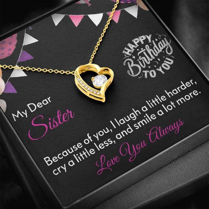 This dazzling Forever Love Pendant features a polished heart pendant surrounding a flawless 7mm cubic zirconia, embellished with smaller crystals adding extra sparkle and shine. Dangling from a fine silver cable chain measuring 18'', this will add ten stars to your sister's wardrobe. Along with the pendant, you will also receive an attractive eminent gift box and a message box with a customized quote to tell her that you will always love her and be there by her side through thick and thin. We assure you she'll love this silver gift- perfect birthday gift for your sister with a quote