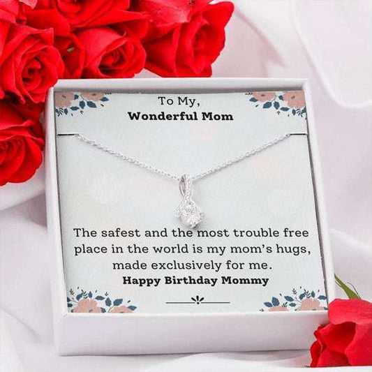 Mom Necklace, Safest And The Most Trouble Free Place Is My Mom’S Hugs Necklace Gift For Mom