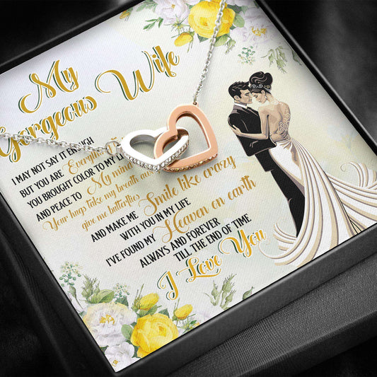 Wife Necklace Gift, To My Gorgeous Wife Gift From Husband “ Interlocking Hearts Necklace