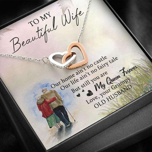 Wife Necklace, Gift For Wife, My Queen Forever “ Interlocking Heart Necklace