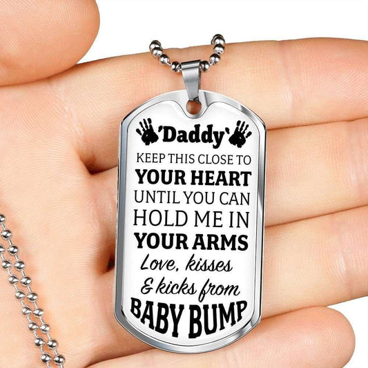 Dad Dog Tag, Custom Picture Father’S Day Gift Keep This Close To Your Heart Dog Tag Military Chain Necklace Gift For Daddy Dog Tag