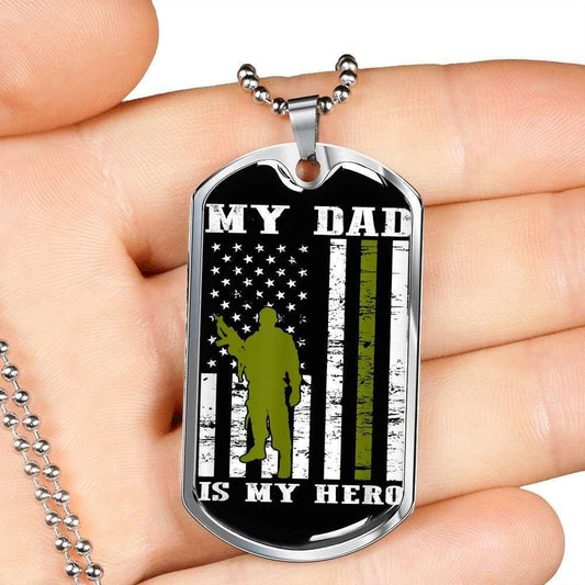Dad Dog Tag, Custom Picture Father’S Day Gift My Dad Is My Hero Dog Tag Military Chain Necklace Giving Dad Dog Tag