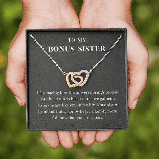 Sister Necklace, Bonus Sister Gifts, Unbiological Sister Gifts, Step Sister Birthday Necklace Gifts, Gift For Sister In Law, Joined Hearts Necklace