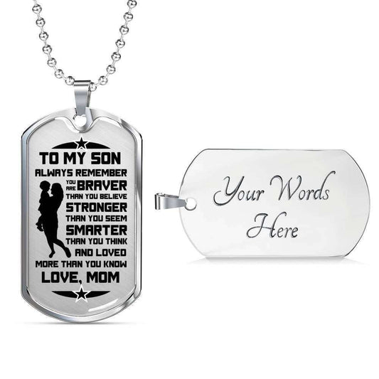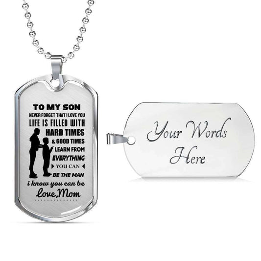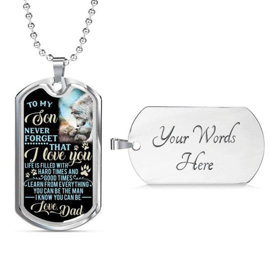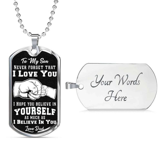 Son Dog Tag “ To My Son Never Forget That I Love You Dog Tag Military Chain Necklace