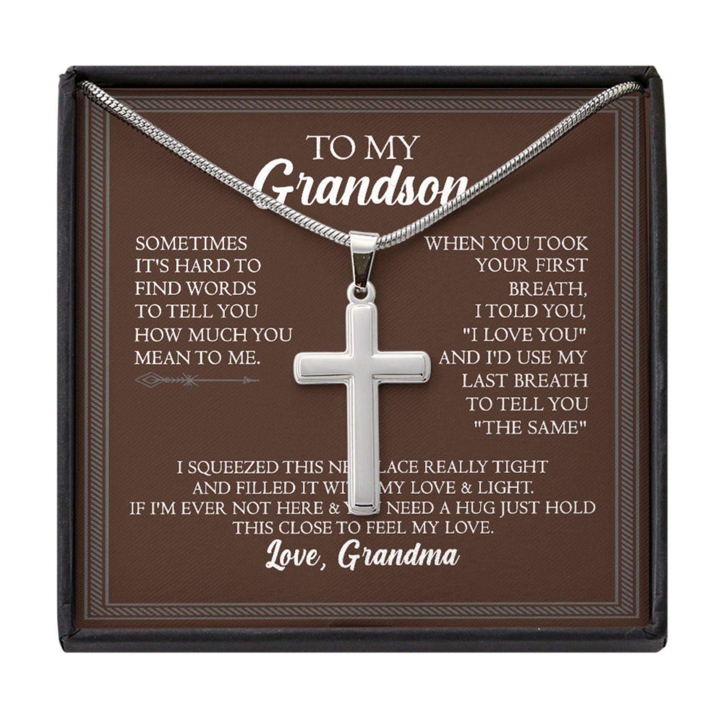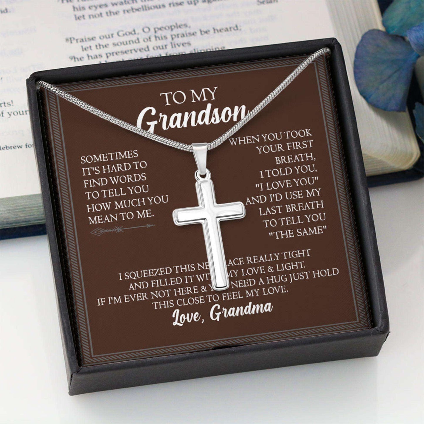 Grandson Necklace, To My Grandson From Grandma Necklace Gift – Grandson Cross Necklace