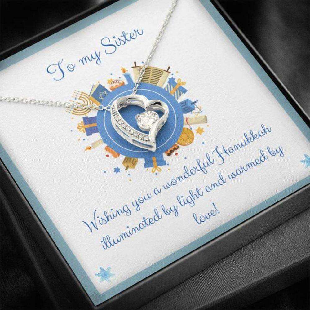 Sister Necklace – Gift To Sister – Gift Necklace With Message Card Happy Hanukkah To My Sister Heart Necklace