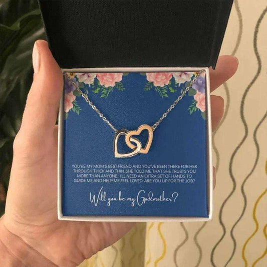 Godmother Necklace, Godmother Proposal Gift Box, Cz Interlocked Hearts Necklace, Godmother Gift, Baptism, Best Friend Godparent Proposal
