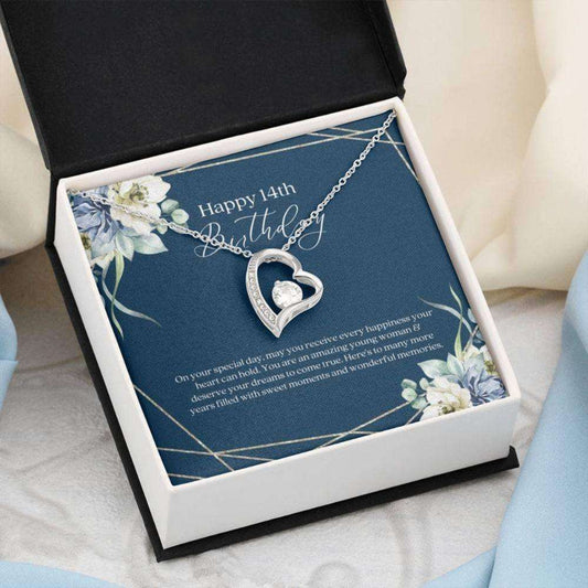 Daughter Necklace, Niece Necklace, Happy 14Th Birthday Necklace Gift For Daughter, Niece, Girls Fourteenth Birthday Heart Necklace