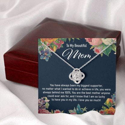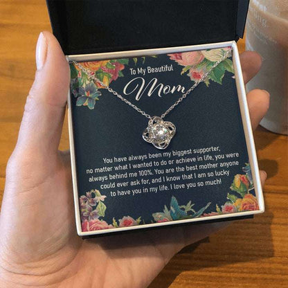 Mom Necklace, To My Beautiful Mom Love Knot Necklace Meaningful Message Card Present For Mother