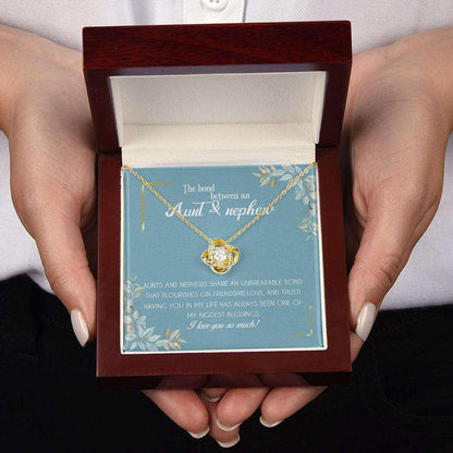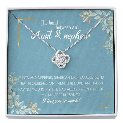 At the heart of this necklace lies the timeless Love Knot, symbolizing the unbreakable bond between two souls. This enduring symbol of eternal love is a favorite among many and reflects the deep and meaningful connection shared between an aunt and her nephew.