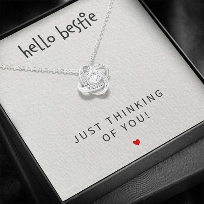 Best Friend Necklace, Hello Bestie Just Thinking Of You Love Knot Necklace