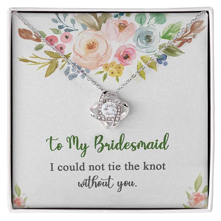 Bridesmaids are more than just a handful of people you choose to pose for pictures with on your wedding day. They are your closest family members and friends — the ones who have seen you through the hard breakups before you found the one and celebrated with you when you finally got that promotion. Sending them nice, thoughtful, funny, and custom gifts can help you express how grateful you are that they're involved in your life, outside of your special day. Surprise her now! The extravagant Love Knot pendant is fashioned from a captivating end result of a glorious White gold finish over 925 sterling silver, and hangs from a cable chain measuring 18". The center cubic zirconia crystal measures 6mm in diameter, and has smaller cubic zirconias surrounding it, enhancing its sheen and sparkle.
