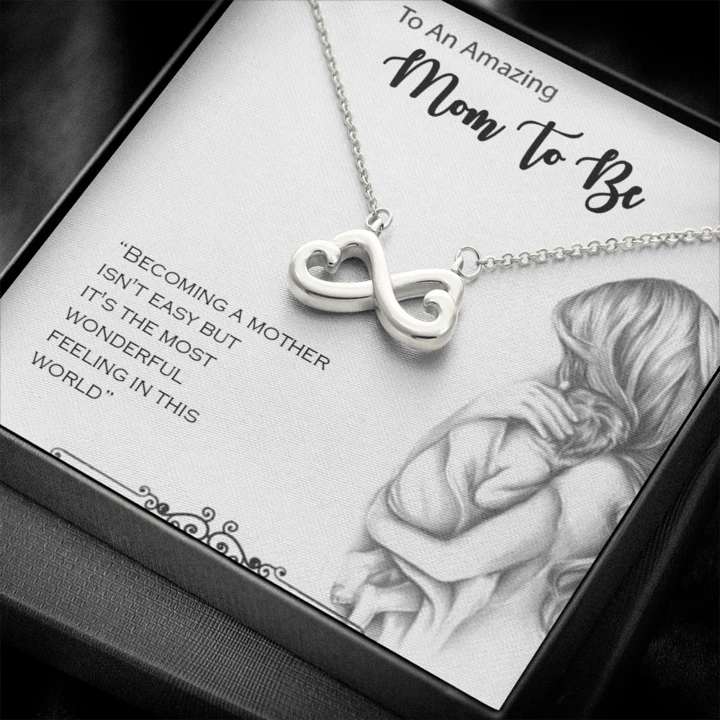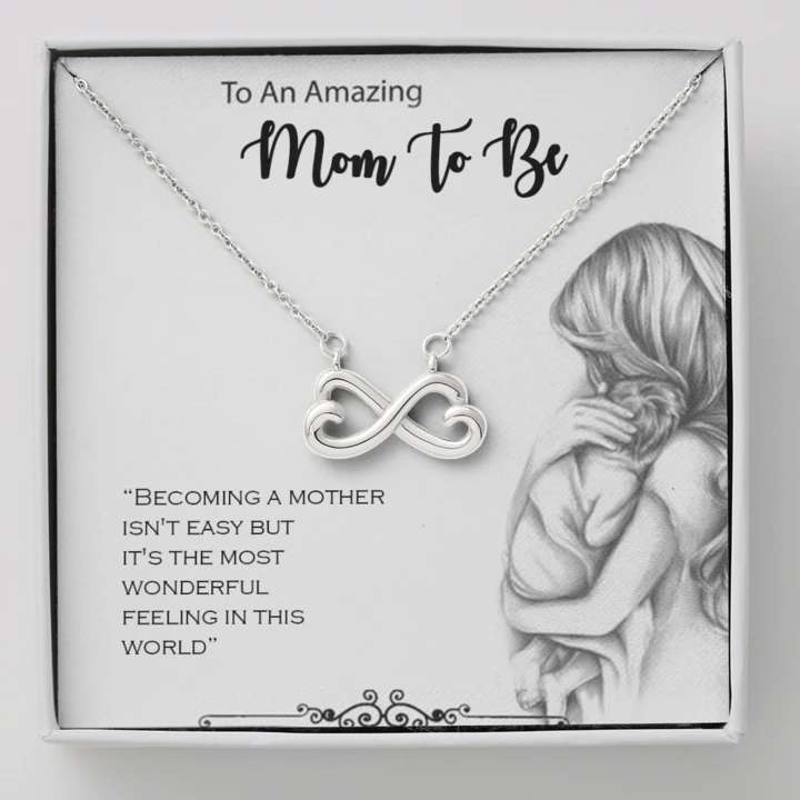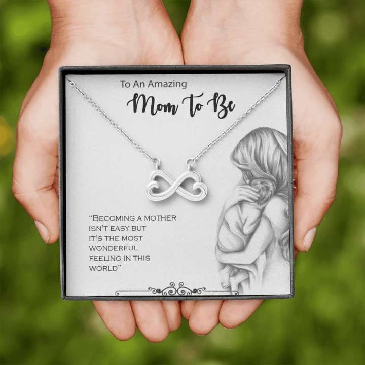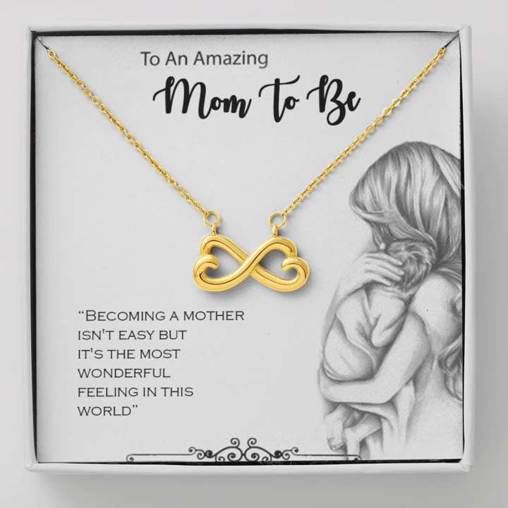 This piece is turned on its side and suspends on an adjustable 18inch cable chain, making it the most meaningful maternity gift for mom to be We cannot see you drop your jaw 'cause we got more for you! You will also receive an amazing stunning gift box and a message card that can be wholly customized with her name, her photo, any quote, or anything else so she'll never forget the details of this special time. Of course, sentimental gifts will always be appreciated.