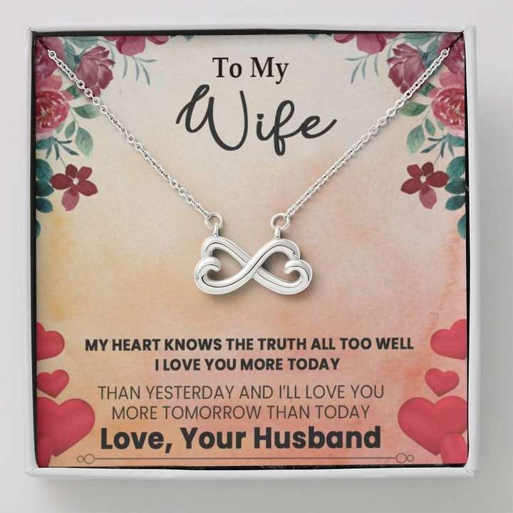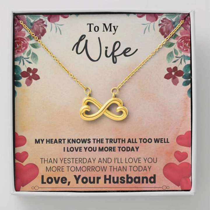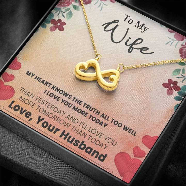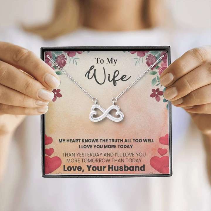 This special gift for wife for any occassion is tasteful, yet stunning to behold. This piece is turned on its side and suspends on an adjustable 18inch cable chain, making it the most creative way to make her feel loved. Oh did we forget to tell you the best part 'cause you will surely get surprised as well! You will also receive an amazing stunning gift box and a message card that can be wholly customized with her name, her photo, any quote, or anything else so she'll always remember how you surprised her. Yes, you heard that correctly. Now, time to make her as astonished as you're now, haha.