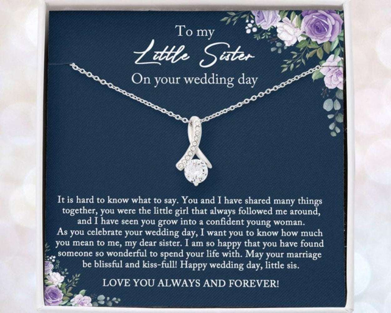 Bride Necklace Gift From Sister, Little Sister Wedding Day Gift, Big Sister To Bride