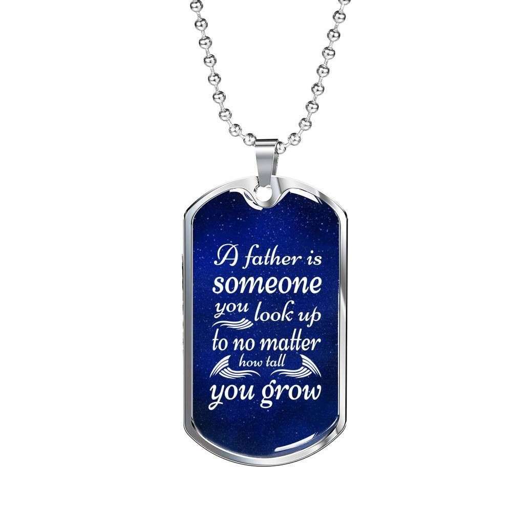 Dad Dog Tag, Custom A Father Is Someone You Look Up Dog Tag Military Chain Necklace Giving Dad Dog Tag
