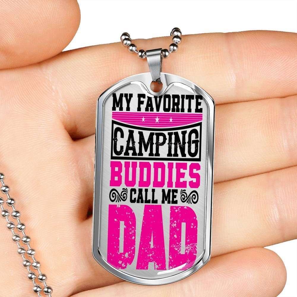 Dad Dog Tag, Custom My Favorite Camping Buddies Call Me Dad Dog Tag Military Chain Necklace Dog Tag