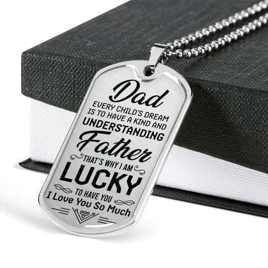 Dad Dog Tag Custom Picture Father’s Day, Lucky To Have You Dog Tag Necklace Gift For Dad