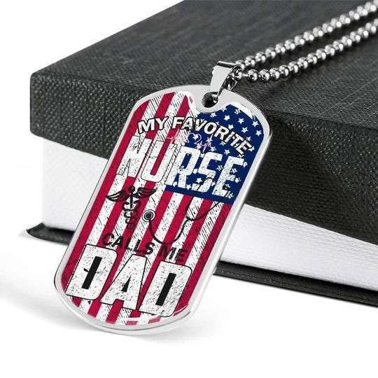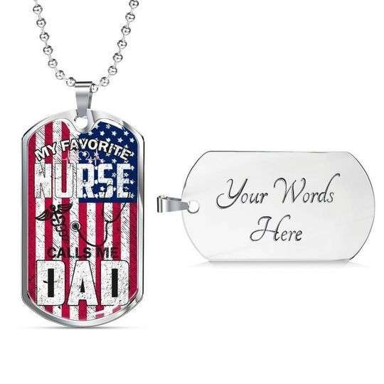Dad Dog Tag Custom Picture Father’s Day, My Favorite Nurse Calls Me Dad Dog Tag Necklace For Dad