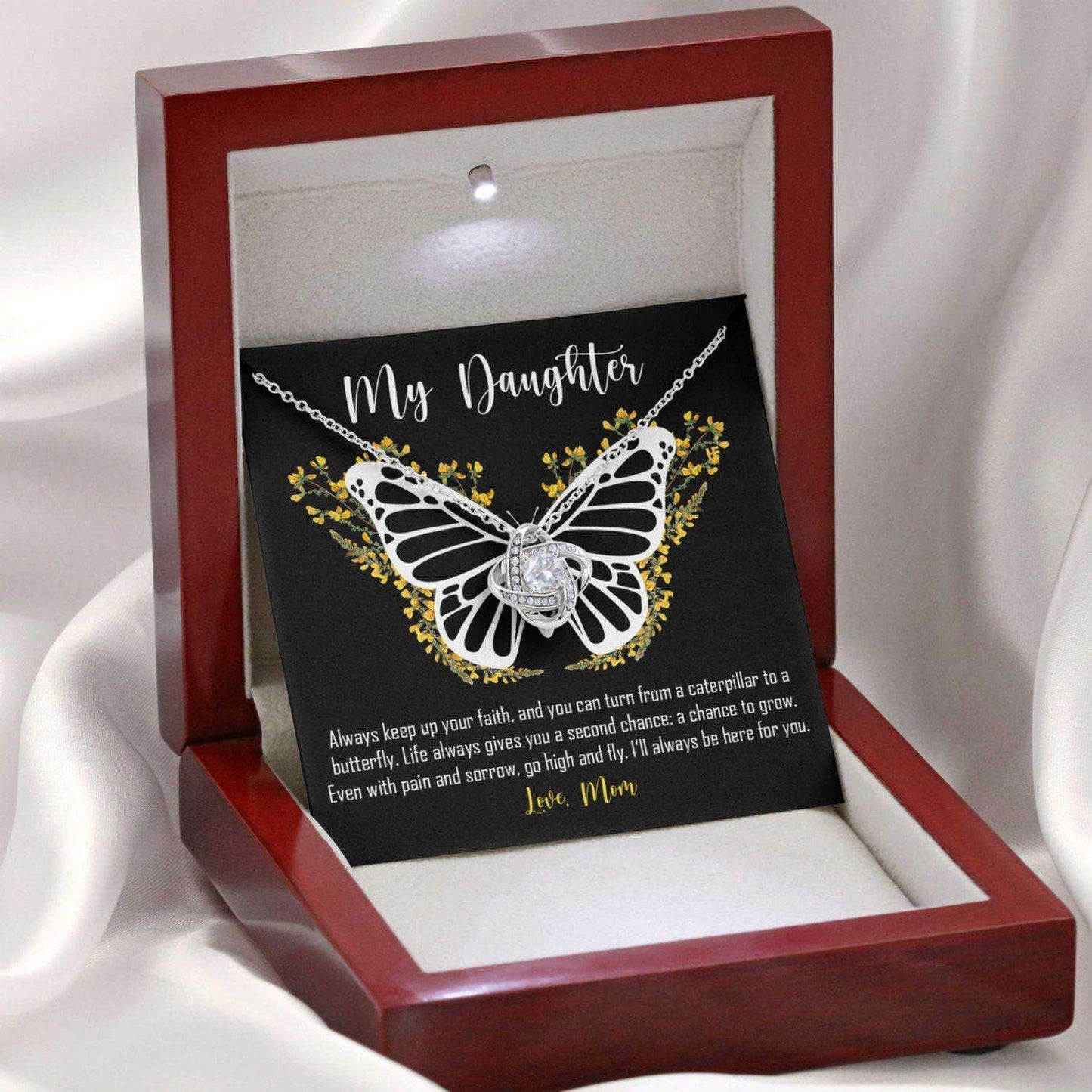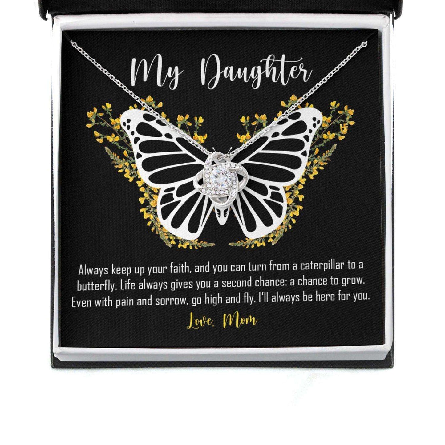 Daughter Necklace, Gift From Mom Keep Up Your Faith, Butterfly Love Knot Necklace