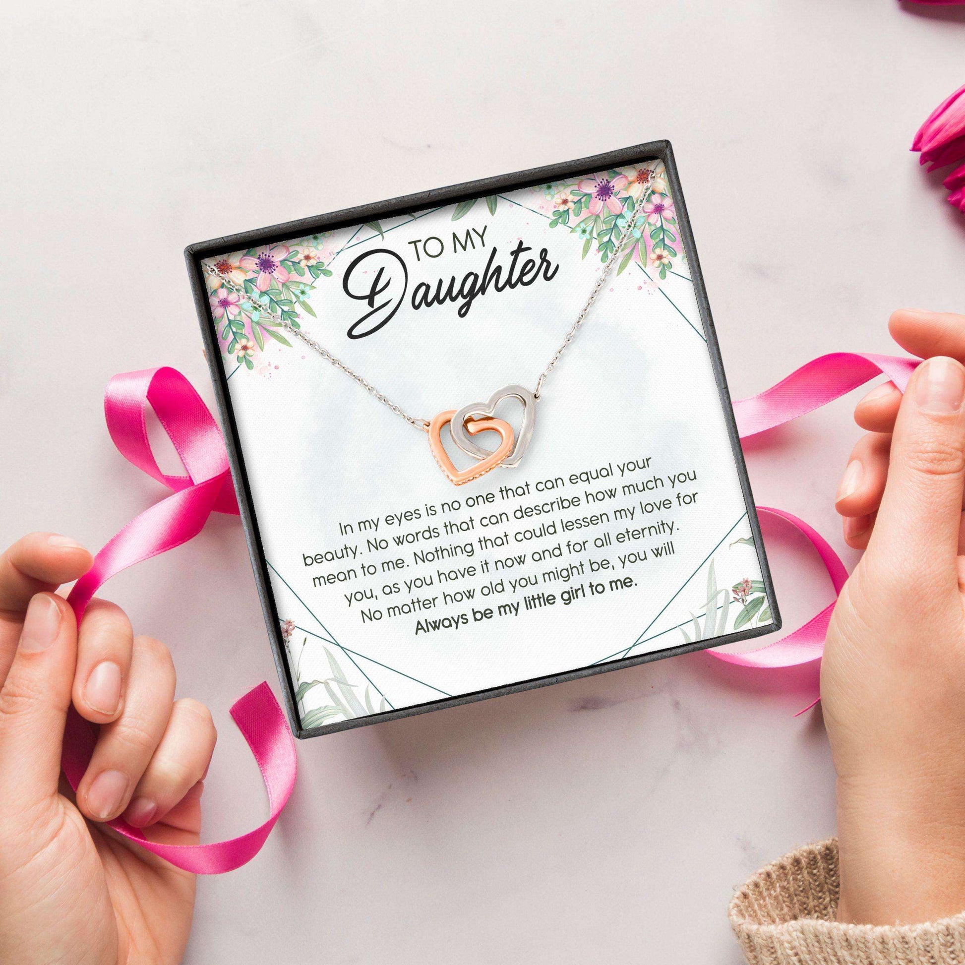 Daughter Necklace, Mother To Daughter Gift “ To My Daughter With Box Message Card, Interlocking Hearts Necklace