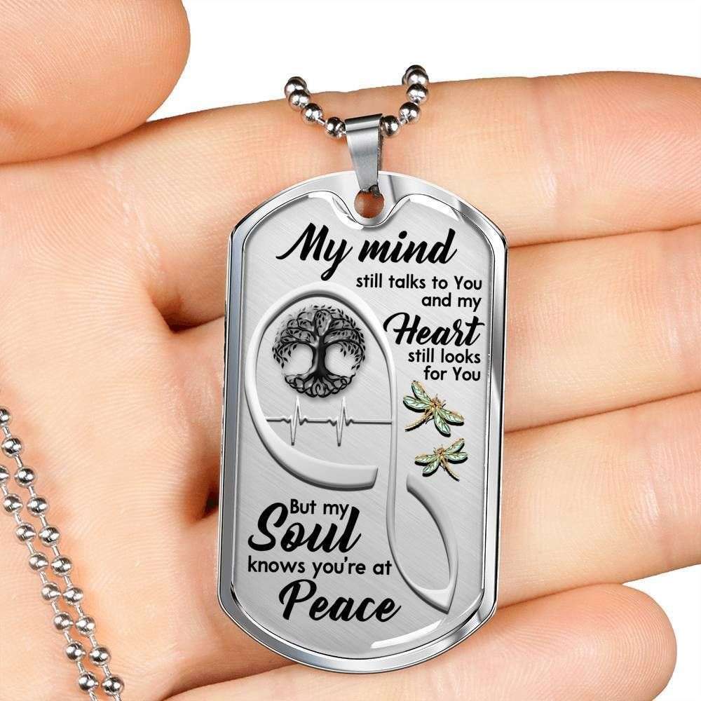 Dragonfly Tree Of Life Heartbeat Infinity Dog Tag Military Chain Necklace