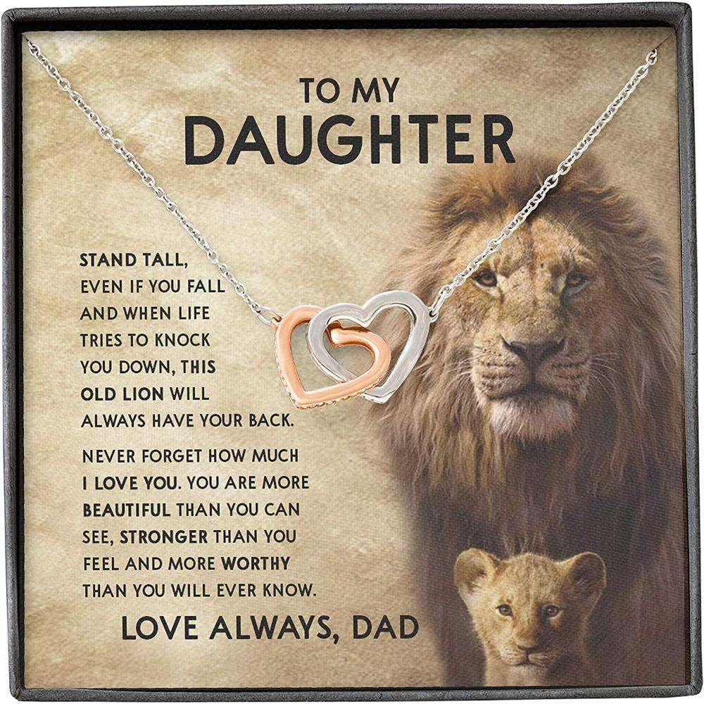 Daughter Necklace, Father Daughter Necklace, Lion Stand Tall Knock Down Back Love Always