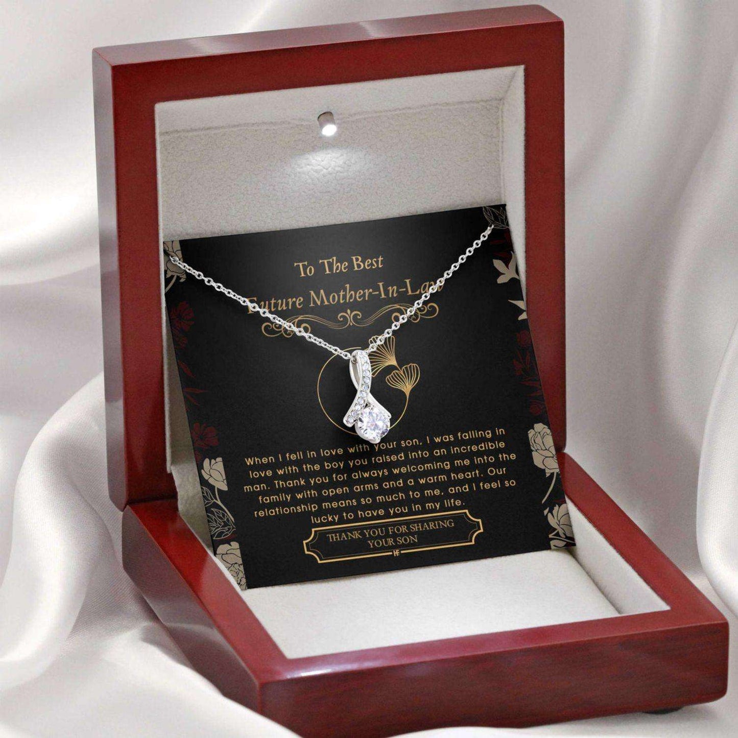 Future Mother In Law Necklace, Gift For Mother’S Day From Daughter V1, Message Card Beauty Necklace