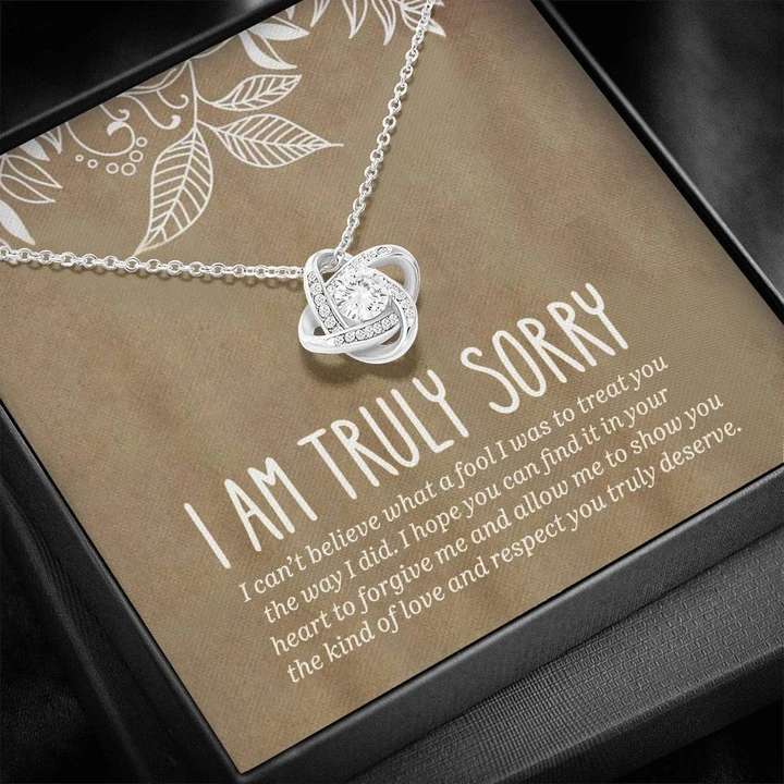 This I am sorry gift for her is crafted with brilliant White gold over 925 sterling silver, and swings from a fine cable chain. The center cubic zirconia crystal measures 6mm in diameter, and is surrounded by smaller cubic zirconia, to add shine and sparkle to this pendant so that it never stops shining around her neck. Isn't it one of the best gifts to say sorry to your girlfriend or your wife? Oh wait, let's make it perfect. You also get a gift box and message card with a customizable quote in it, to let her know how truly sorry you are.