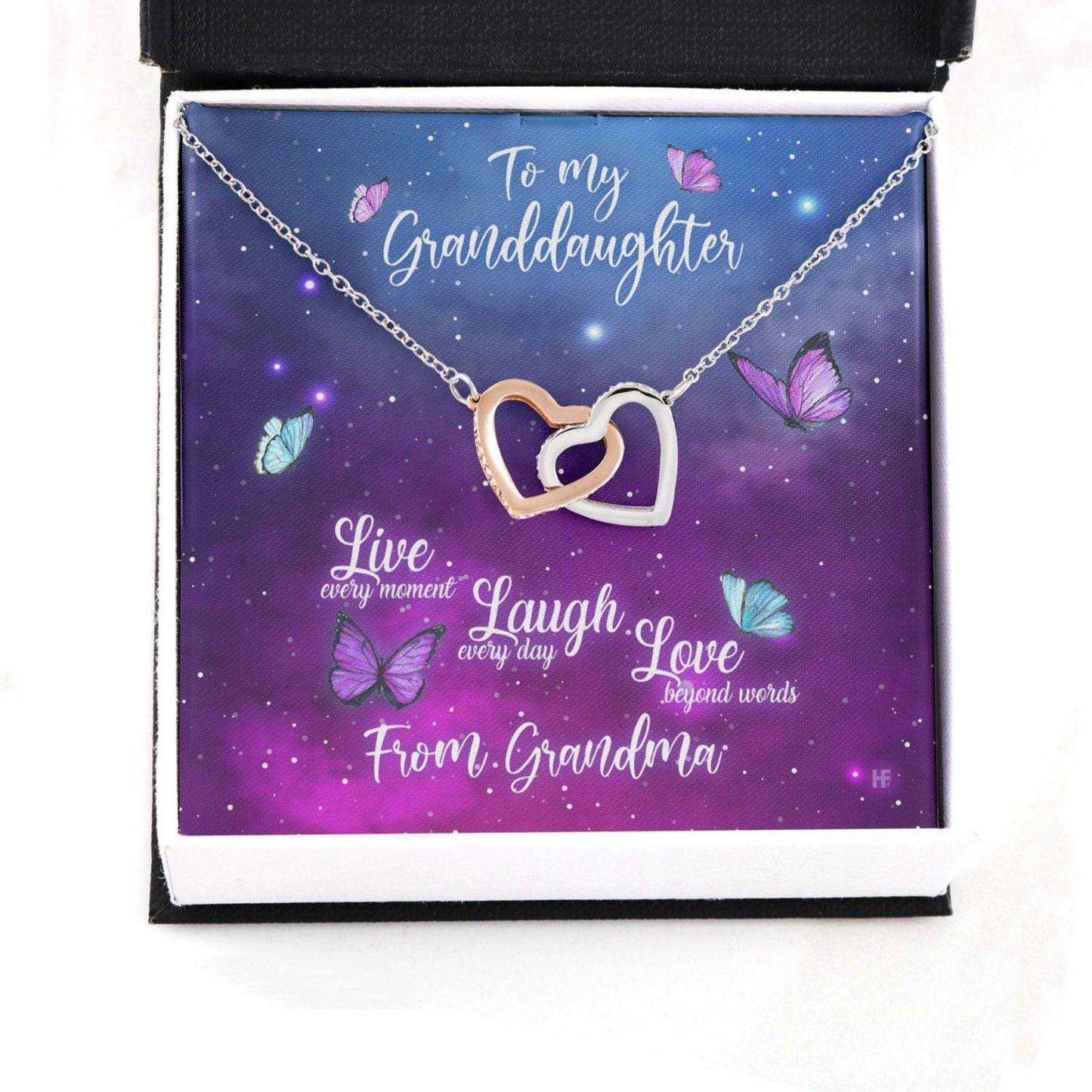Granddaughter Necklace, Gift For Mother’S Day From Grandma Live Laugh Love, Butterfly Hearts Necklace