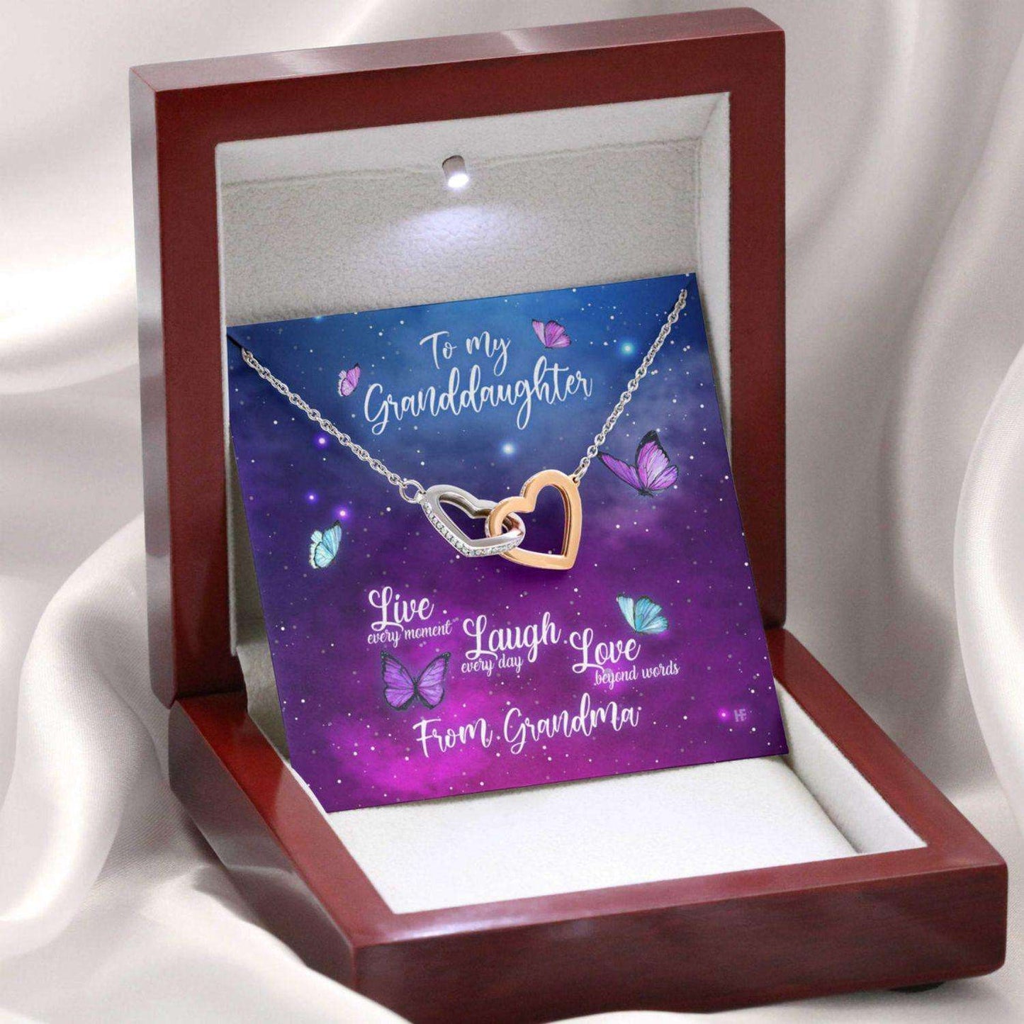 Granddaughter Necklace, Gift For Mother’s Day From Grandma Live Laugh Love, Butterfly Hearts Necklace