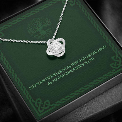 Grandmother Necklace, Far Apart As My Grandmother’s Teeth – Irish Blessing Love Knot Necklace