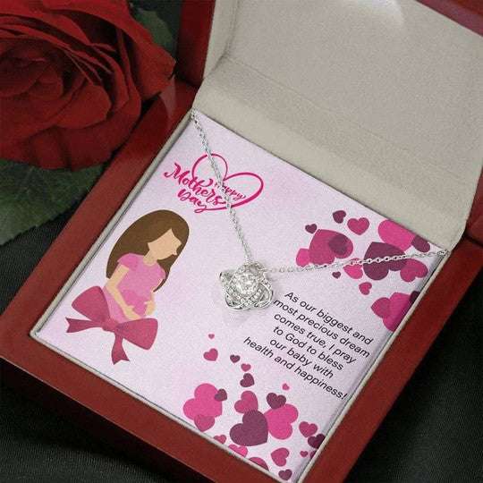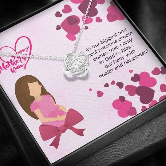 Mom Necklace, Bless Our Baby With Health And Happiness Love Knot Necklace Gift For Mom To Be