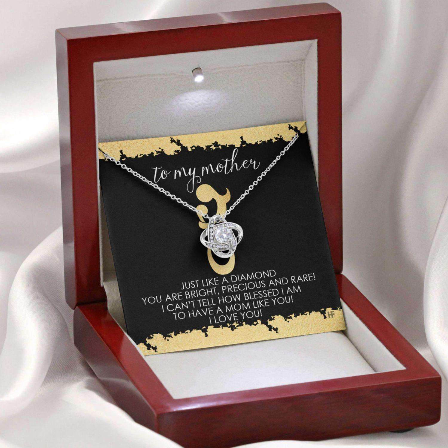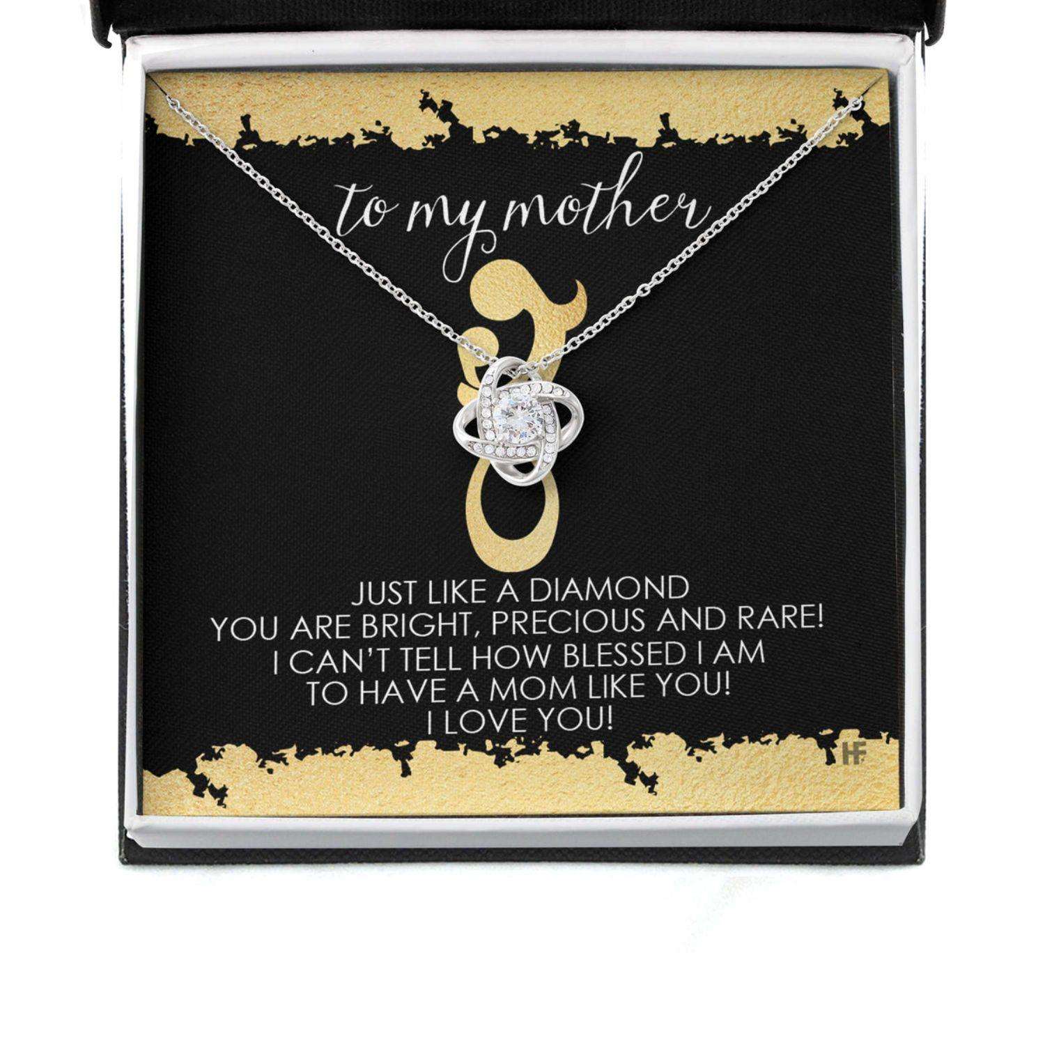 Mom Necklace, Gift For Mother’S Day Just Like A Diamond, Heartfelt Message Card Love Knot Necklace