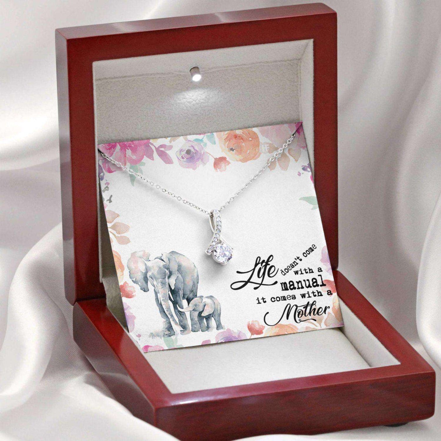 Mom Necklace, Gift For Mother’S Day Life Doesn’T Come With A Manual, Elephant Message Card Beauty Necklace