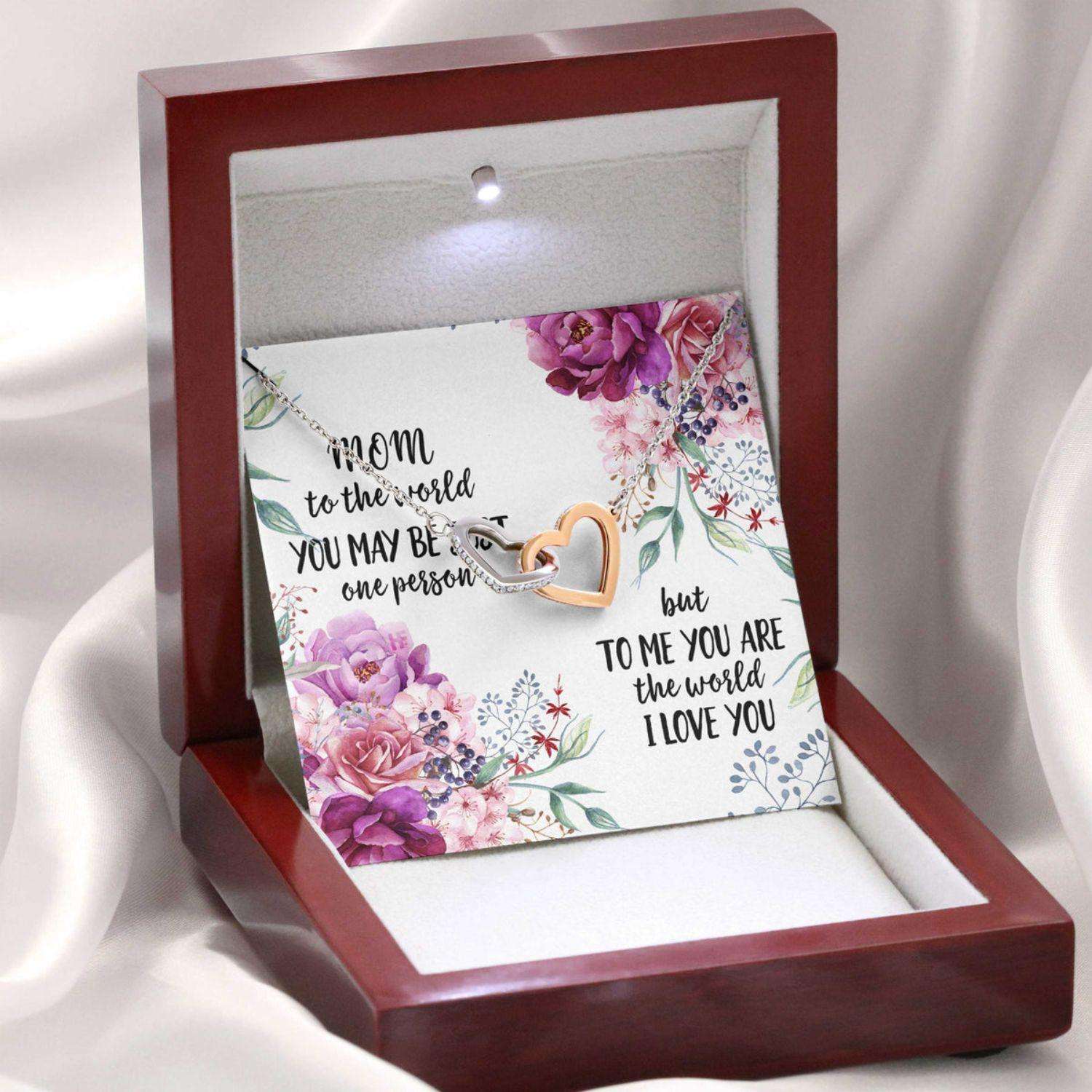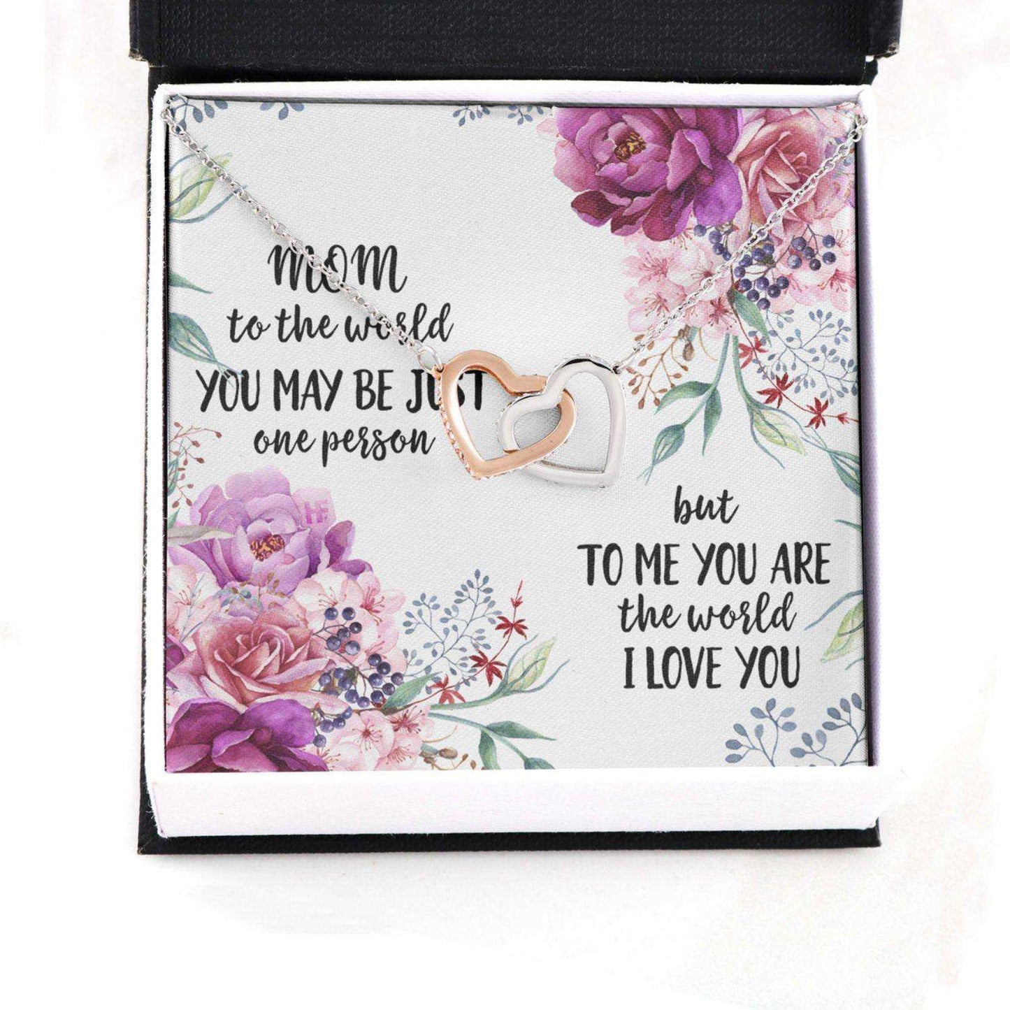 Mom Necklace, Gift For Mother’s Day Mother You Are My World Message Card Hearts Necklace