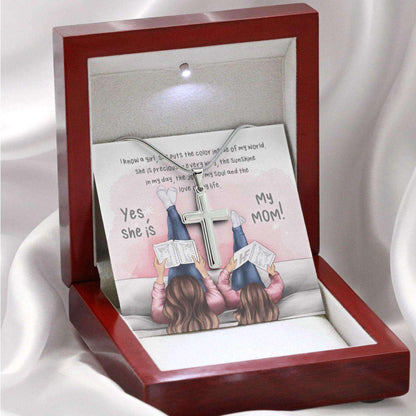Mom Necklace, Gift For Mother’s Day Precious In Every Way, Message Card Cross Necklace