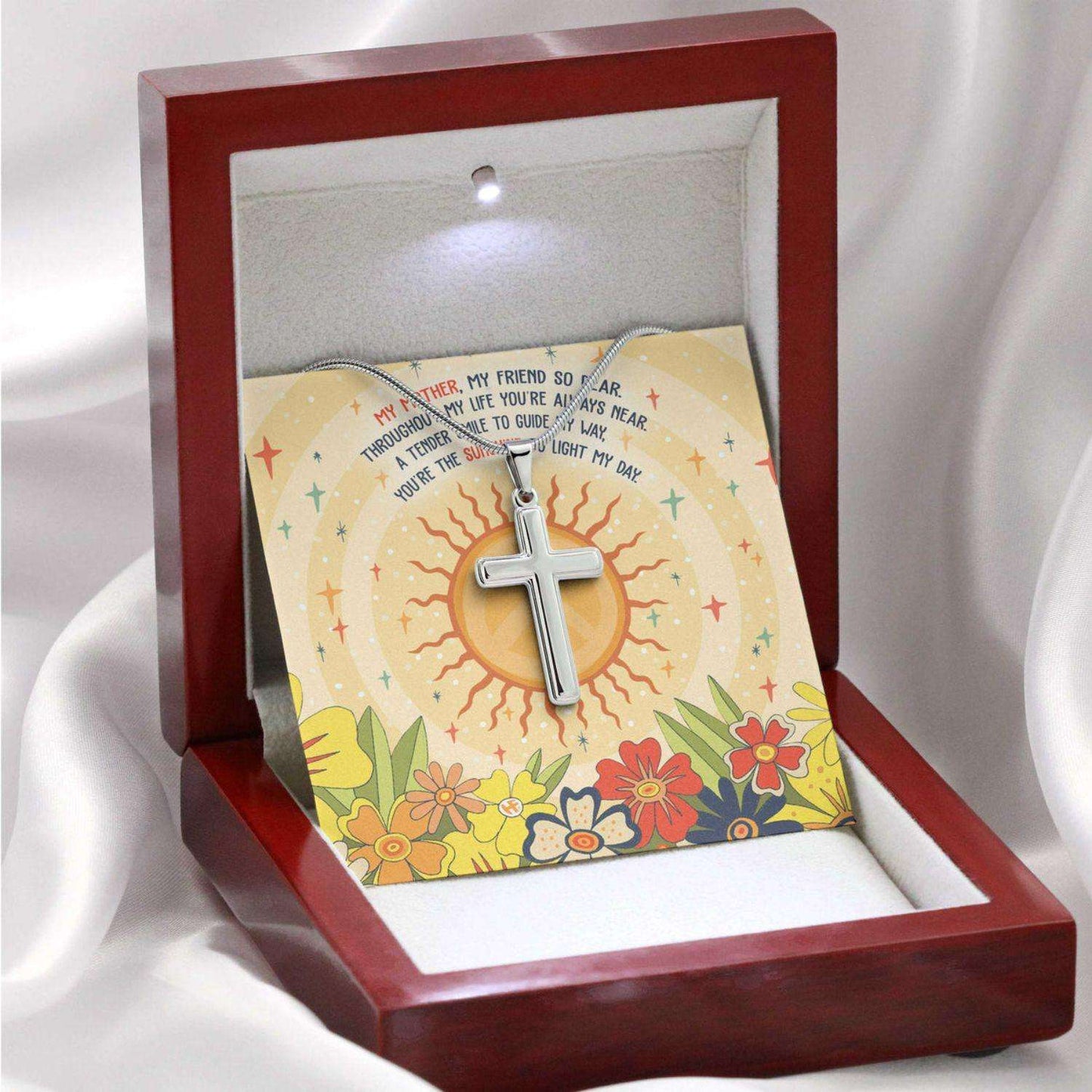 Mom Necklace, Gift For Mother’S Day Sunshine To Light My Day, Cute Mesage Card Cross Necklace