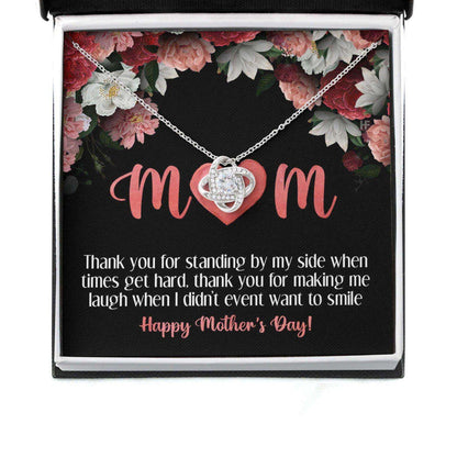 Mom Necklace, Gift For Mother’S Day Thank You For Standing By My Side, Heart Message Card Love Knot Necklace