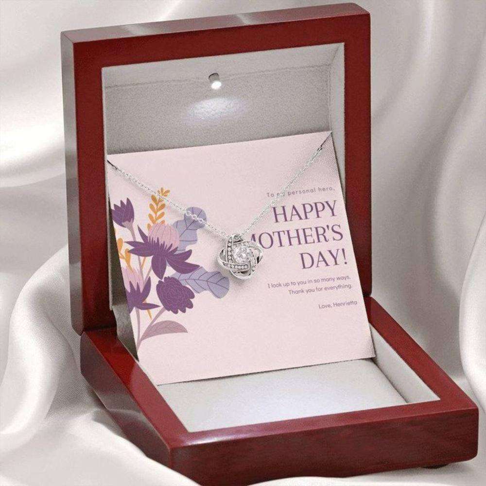 Mom Necklace, Happy Mother’s Day Necklace Gift, I Look Up To You In So Many Ways, Love Knot Necklace Gift For Mom