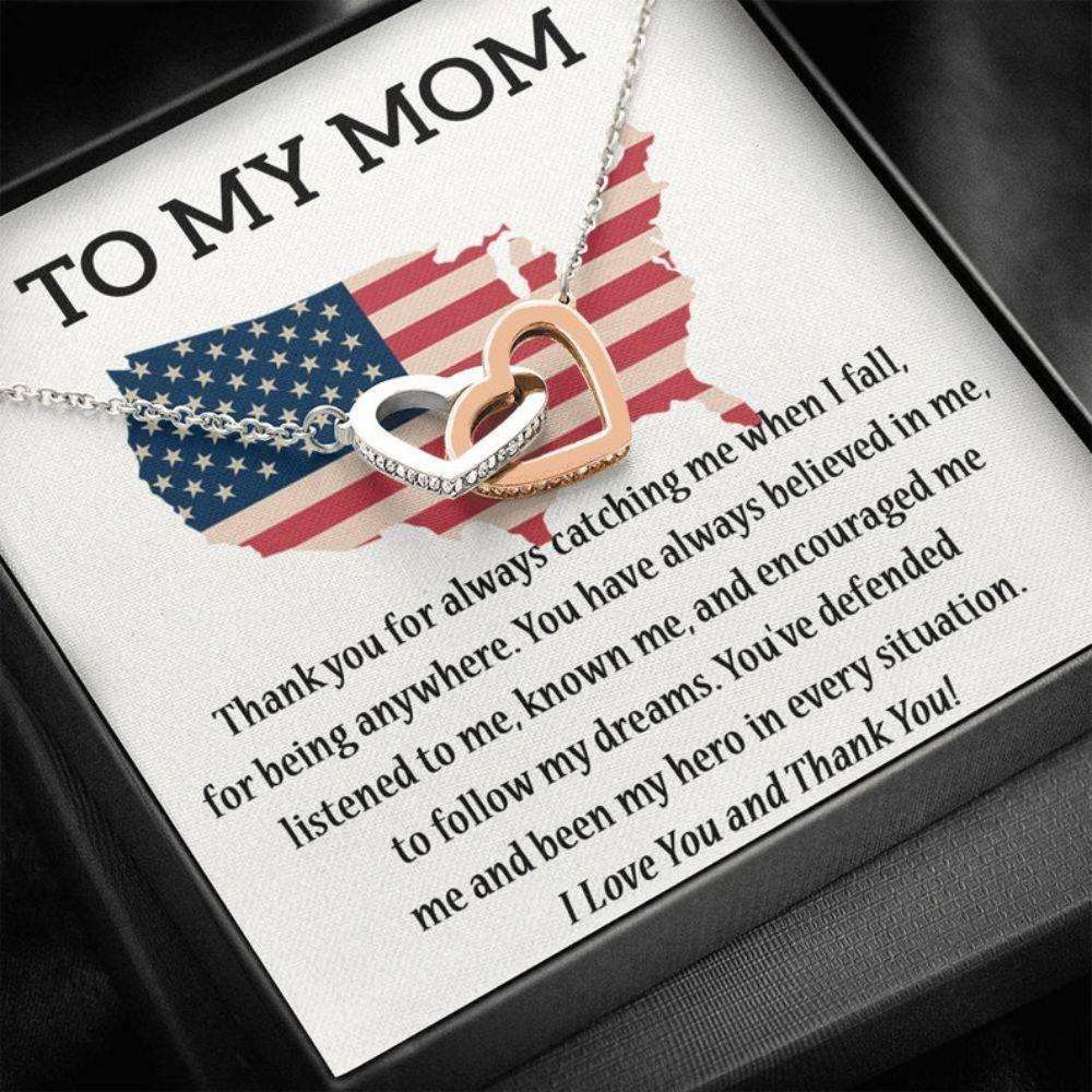 Mom Necklace, Mom Necklace, Mom Birthday Necklace, July 4Th Patriotic For Mom, Interlocking Necklace, Independence Day Gift For Mom